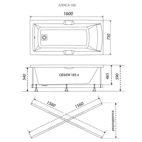 Акриловая ванна Triton Алекса Щ0000049499 160x75 см на Х-каркасе белый купить