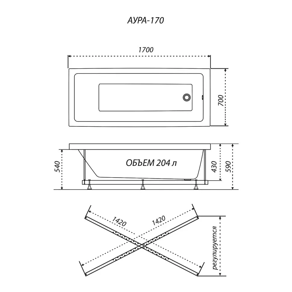 Акриловая ванна Triton Аура Щ0000043572 170x70 см на Х-каркасе белый купить
