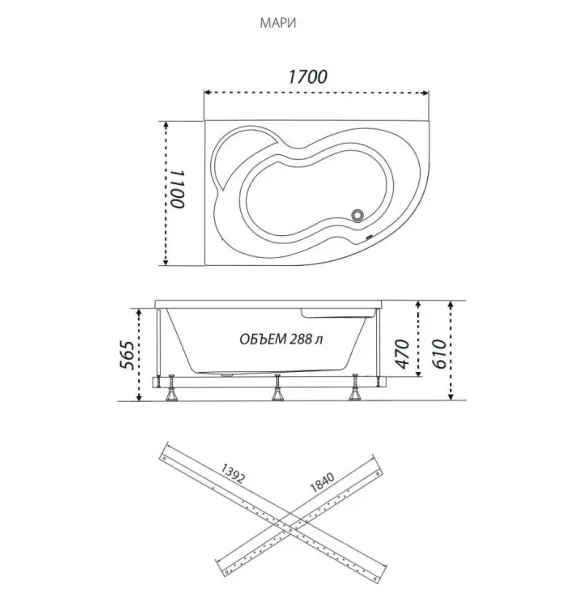 Акриловая ванна Triton Мари Щ0000046667 правая 170x110 см на Х-каркасе белый Акриловая ванна Triton Мари Щ0000046667 правая 170x110 см на Х-каркасе белый Казань 24900.30 34110.00 Triton