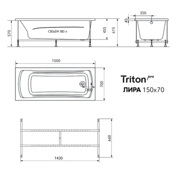 Акриловая ванна Triton Pro Лира Щ0000070219 150x70 см белый Акриловая ванна Triton Pro Лира Щ0000070219 150x70 см белый Казань 15950.00 {old_price} Triton