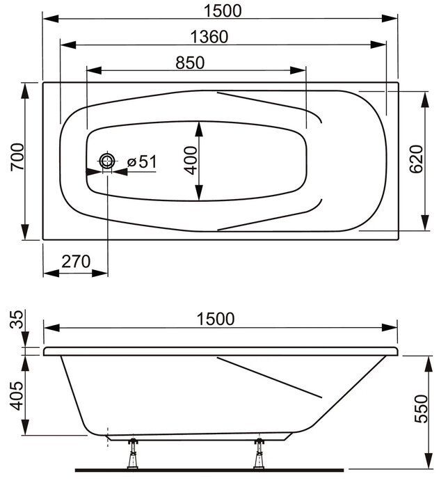Стандартные размеры, см:150x70