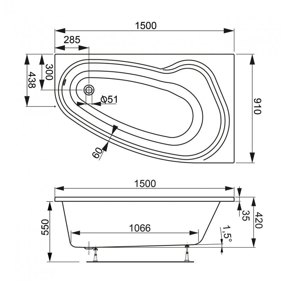 Акриловая ванна VagnerPlast Avona VPBA159AVO3PX-04 правая 150x90см белый купить