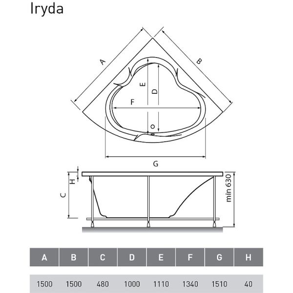 Высота ванны на каркасе: 63 см.