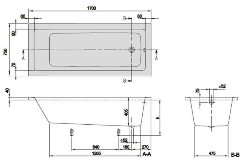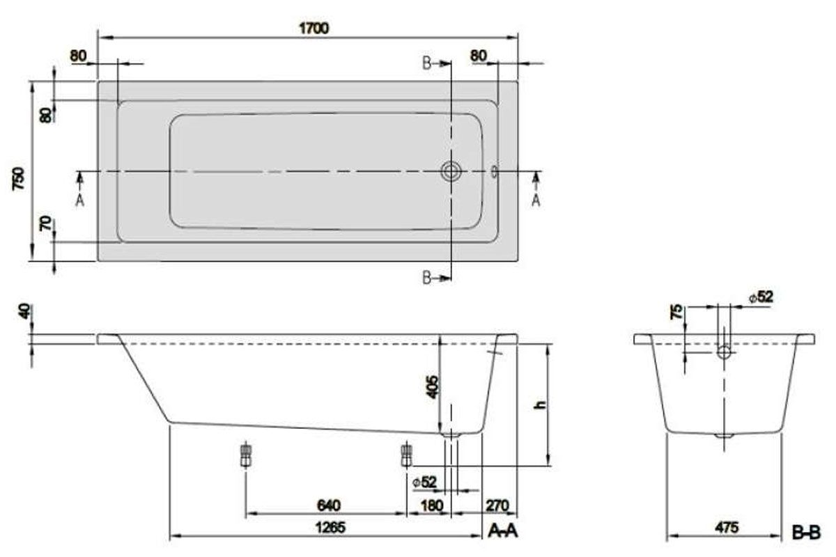 Акриловая ванна Villeroy Boch Targa Plus Solo UBA171NES2V01+U99740000 170х75 см ножки в комплектеРазмер: 170х75х41 см