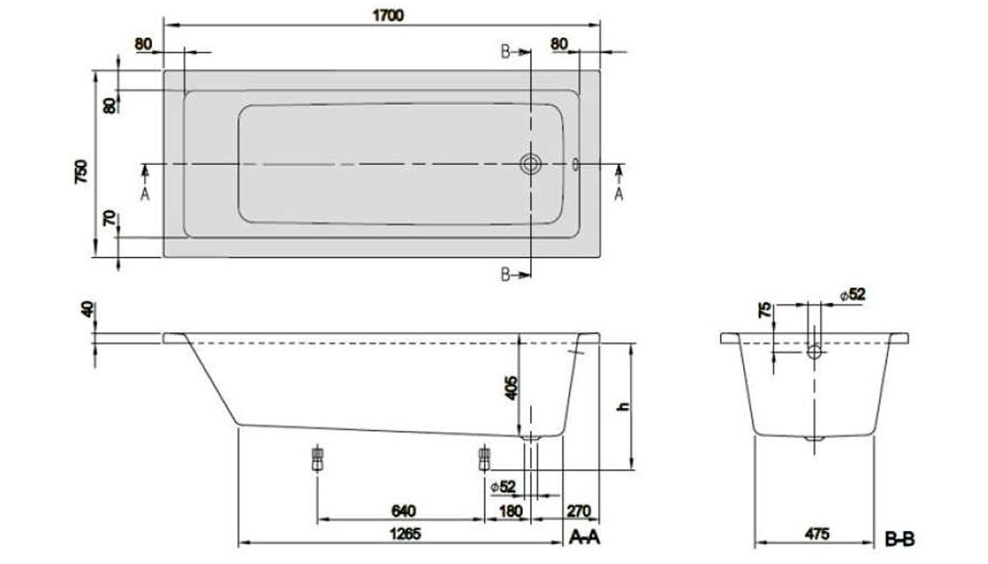 Акриловая ванна Villeroy Boch Targa Plus Solo UBA177NES2V01+U99740000 170х70 см ножки в комплектеРазмер: 170х70х42 см