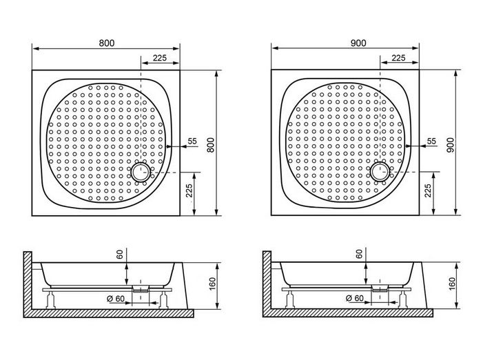 Акриловый поддон для душа квадратный