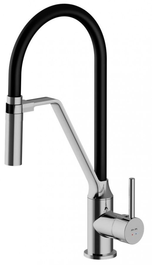 Стильный и функциональный смеситель для кухни с профессиональным изливом.Гибкий излив значительно расширяет зону использования смесителя. Гарантирует легкий уход за мойкой и наполнение емкостей любой высоты. Излив изготовлен из термостойкого силикона. Силикон абсолютно безопасен при контакте с водой, т.к. в составе силикона отсутствуют вредные для здоровья токсичные компоненты. Гладкий силиконовый излив устойчив к загрязнениям - легкий уход. Излив износостойкий и устойчив к перегибам.