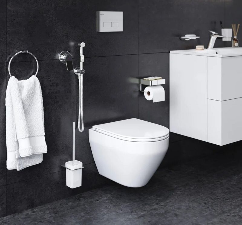 Гигиенический набор для скрытого монтажа со смесителем для душа:Гигиенический душ:Изготовлен из ABS-пластика. Многослойное хромникелевое покрытие устойчиво к царапинам и потускнению, сохраняет первоначальный цвет и блеск на протяжении всего срока службы.