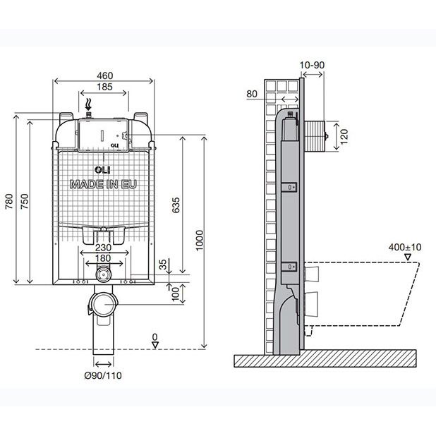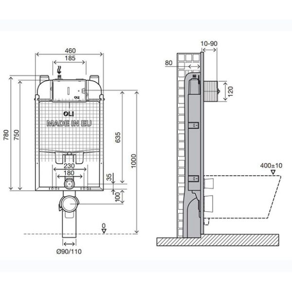 Инсталляционная система OLI 74 SIMFLEX. Размер (0460/0780/0080). Для установки в стене под механическую панель слива.