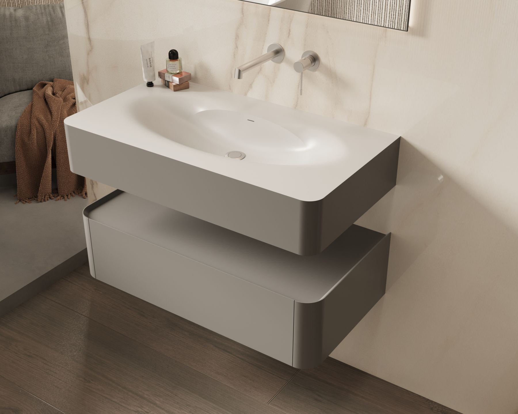 База под раковину Vincea Caprice 1000 подвесная, 1 выкатной ящик soft-close, светло-серый матовый купить