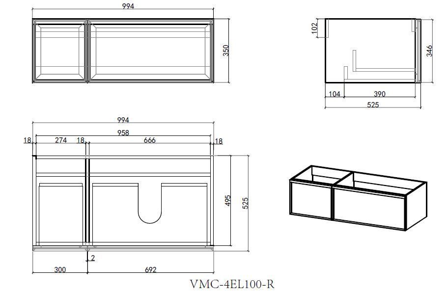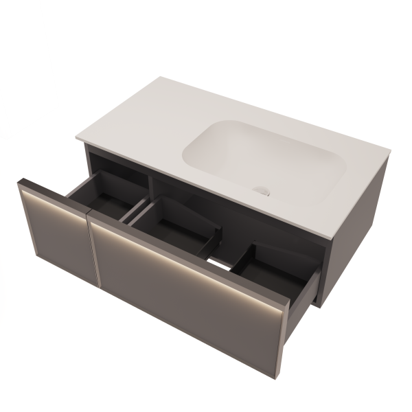 База под раковину Vincea Elise 1000 подвесная, правая, 2 выкатных ящика soft-close, серый матовый купить