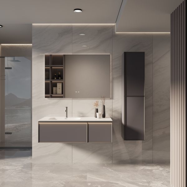 База под раковину Vincea Elise 1200 подвесная, левая, 2 выкатных ящика soft-close, серый матовый купить