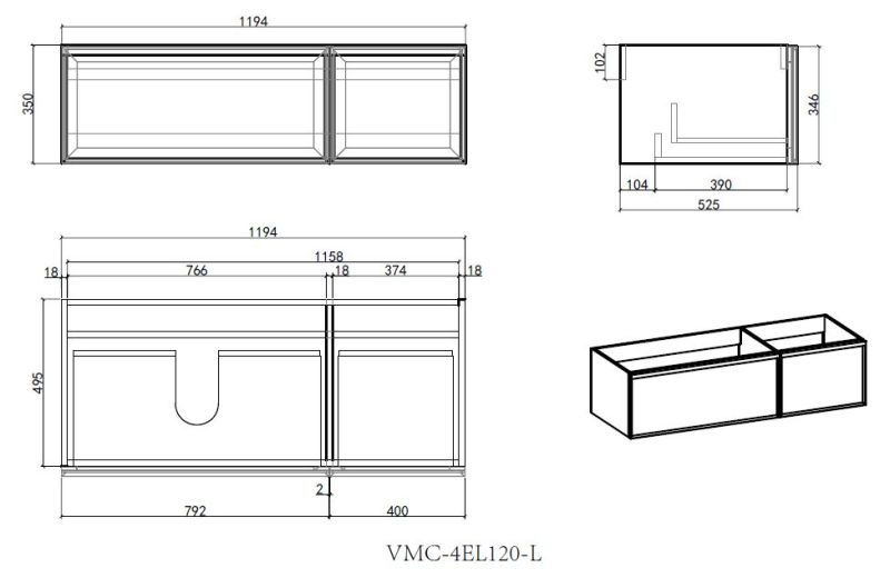 База под раковину Vincea Elise 1200 подвесная, левая, 2 выкатных ящика soft-close, серый матовый База под раковину Vincea Elise 1200 подвесная, левая, 2 выкатных ящика soft-close, серый матовый Казань 67020.00 74470.00 Vincea