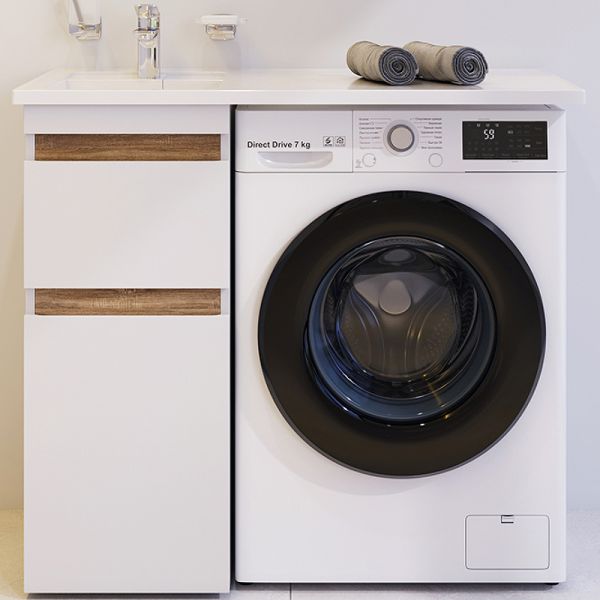 Тумба под раковину AM.PM X-Joy 40 M85AFSX0402WG для установки со стиральной машиной.Характеристики:Цвет: белый глянец, светлое дерево.