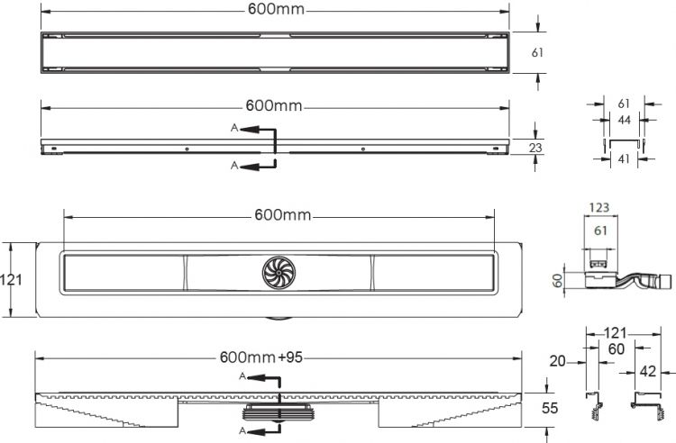 Душевой лоток Berges Wasserhaus B1 Keramik 090117 60 Матовый хром купить