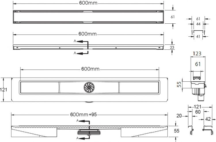 Душевой лоток Berges Wasserhaus B1 Keramik 090017 60 Матовый хром – является надежным дренажным устройством в составе современной системы водоотведения. Страна изготовления – Германия, коллекция B1 Keramik.Berges Wasserhaus B1 Keramik 090017 60 Матовый хром выполнен в одном корпусе с гидрозатвором, благодаря чему достигается герметичность изделия и создается надежный барьер против запахов из системы канализации. Прямоугольную форму решетки сантехнического устройства Berges Wasserhaus можно удачно обыграть при установке устройства вдоль стен, рядом с перегородкой и т.д. Видимая часть конструкции изготовлена из полированной нержавеющей стали, которая отлично сочетается с другими элементами коллекции B1 Keramik. Габаритные размеры изделия составляют 69.50х12.10 см при максимальной длине и ширине внешней части 60.0х6.1 см. Дренажное устройство производства Berges Wasserhaus имеет минимальную высоту – тем самым достигается простота установки путем встраивания в пол ванной. Конструкцией предусмотрен вертикальный выпуск сточных вод. Этим достигается высокая пропускная способность лотка Berges Wasserhaus B1 Keramik 090017 60 Матовый хром и возможность монтажа в любом месте, независимо от схемы разводки канализационных труб. Пластик, из которого сделан патрубок и элементы слива дренажного устройства Berges Wasserhaus, не боится вредного воздействия влаги, бытовой химии, высокой температуры и прочих разрушающих факторов. Хром матовый цвет наружной решетки лотка Berges Wasserhaus прекрасно сочетается с другими элементами коллекции B1 Keramik.