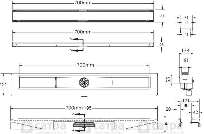 Душевой лоток Berges Wasserhaus B1 Keramik 090018 70 Матовый хром купить
