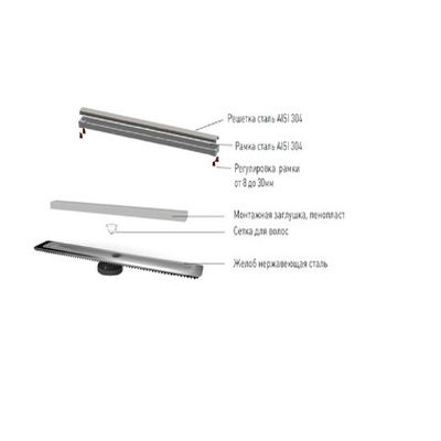 Душевой лоток Berges Wasserhaus B1 Keramik 090018 70 Матовый хром – является надежным дренажным устройством в составе современной системы водоотведения. Страна изготовления – Германия, коллекция B1 Keramik.Berges Wasserhaus B1 Keramik 090018 70 Матовый хром выполнен в одном корпусе с гидрозатвором, благодаря чему достигается герметичность изделия и создается надежный барьер против запахов из системы канализации. Прямоугольную форму решетки сантехнического устройства Berges Wasserhaus можно удачно обыграть при установке устройства вдоль стен, рядом с перегородкой и т.д. Видимая часть конструкции изготовлена из полированной нержавеющей стали, которая отлично сочетается с другими элементами коллекции B1 Keramik. Габаритные размеры изделия составляют 79.50х12.10 см при максимальной длине и ширине внешней части 70.0х6.1 см. Дренажное устройство производства Berges Wasserhaus имеет минимальную высоту – тем самым достигается простота установки путем встраивания в пол ванной. Конструкцией предусмотрен вертикальный выпуск сточных вод. Этим достигается высокая пропускная способность лотка Berges Wasserhaus B1 Keramik 090018 70 Матовый хром и возможность монтажа в любом месте, независимо от схемы разводки канализационных труб. Пластик, из которого сделан патрубок и элементы слива дренажного устройства Berges Wasserhaus, не боится вредного воздействия влаги, бытовой химии, высокой температуры и прочих разрушающих факторов. Хром матовый цвет наружной решетки лотка Berges Wasserhaus прекрасно сочетается с другими элементами коллекции B1 Keramik.