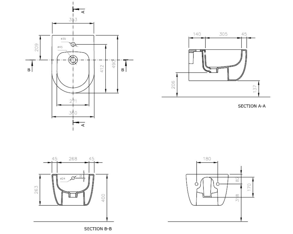 Биде Allen Brau Infinity 49х36 см, подвесное, белое, 4.31005.20Размеры: 36 х 49 х 31 см