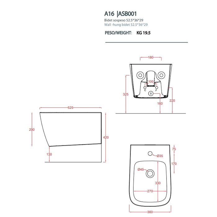 Биде Artceram A16 ASB001 38 00 blu avioArtceram A16 Биде подвесное 36х52 см, 1 отверстие, цвет blu avio