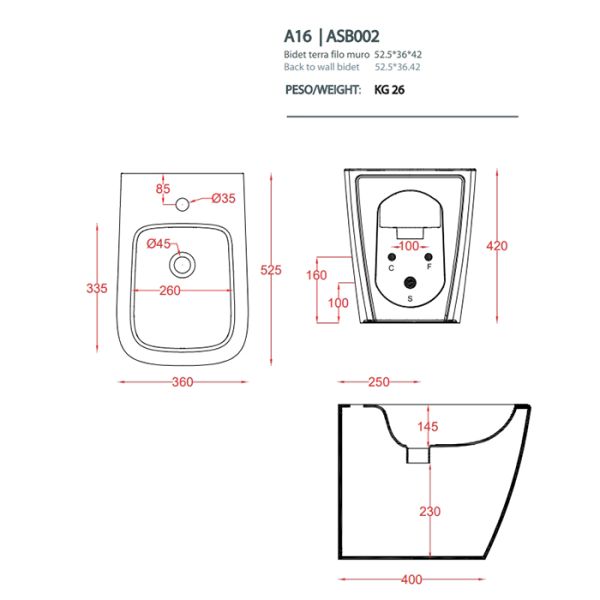 Биде Artceram A16 ASB002 17 00 nero matt *1 черноеArtceram A16 Биде напольное 52,5х36хh42см, с 1 отв под смеситель, цвет: черный матовый