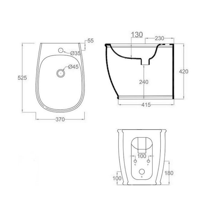 Биде Artceram Azuley AZB002 01 00 белоеArtceram AZULEY Биде напольное приставное 36*52см c креплением, с 1 отв под смеситель цвет белый