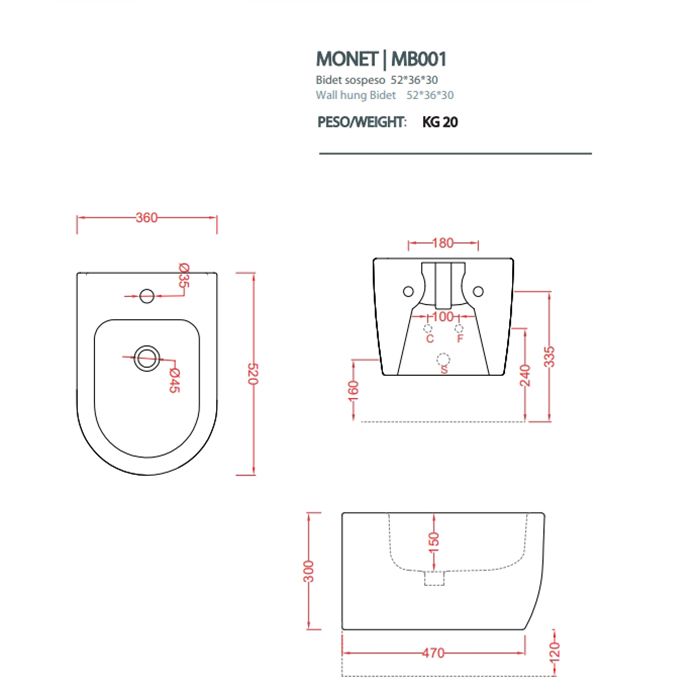 Биде Artceram Monet MNB001 17 00 черноеArtceram MONET Биде подвесное 36х52 см, 1 отверстие, цвет черный матовый