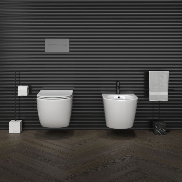 Подвесное биде Forma, 1 отверстие под смеситель, с крепежом для полностью скрытого монтажа. В комплекте донный клапан с керамической накладкой