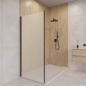 Боковая панель с пристенным профилем, оснащена высокопрочным закалённым стеклом толщиной 6 мм и усиленным профилем для соединения в конфигурацию П-образного или Г-образного угла с душевыми дверьми RGW CL-13, которые имеют цвет профиля и стекло в аналогичном исполнении