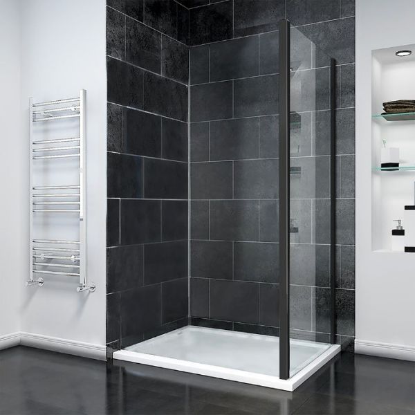 Боковая панель Veconi KP-14B, 900x1950, черный матовый, прозрачное стекло купить
