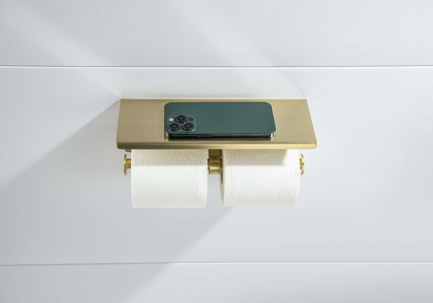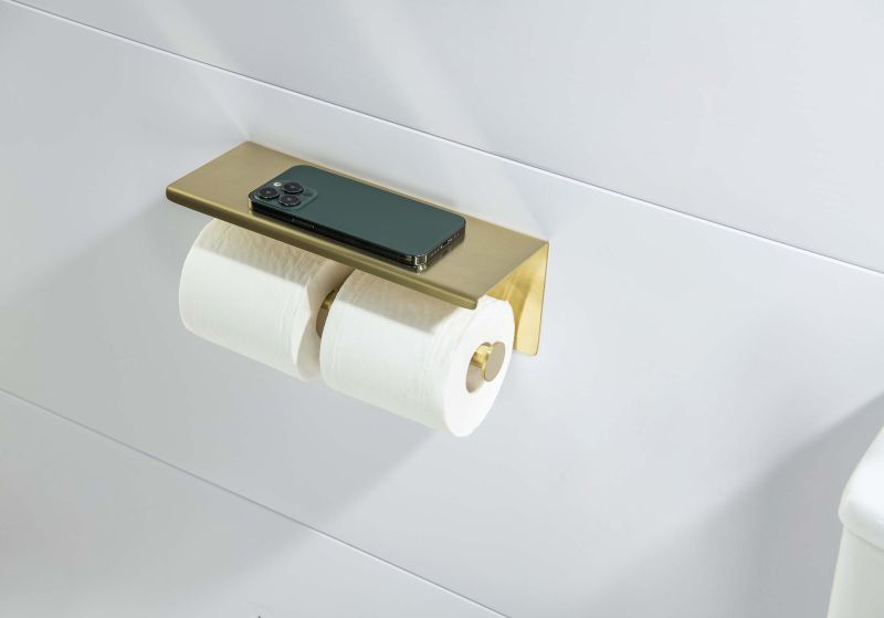 Бумагодержатель двойной с полкой Aquatek Оберон AQ4909BG шлифованное золото купить