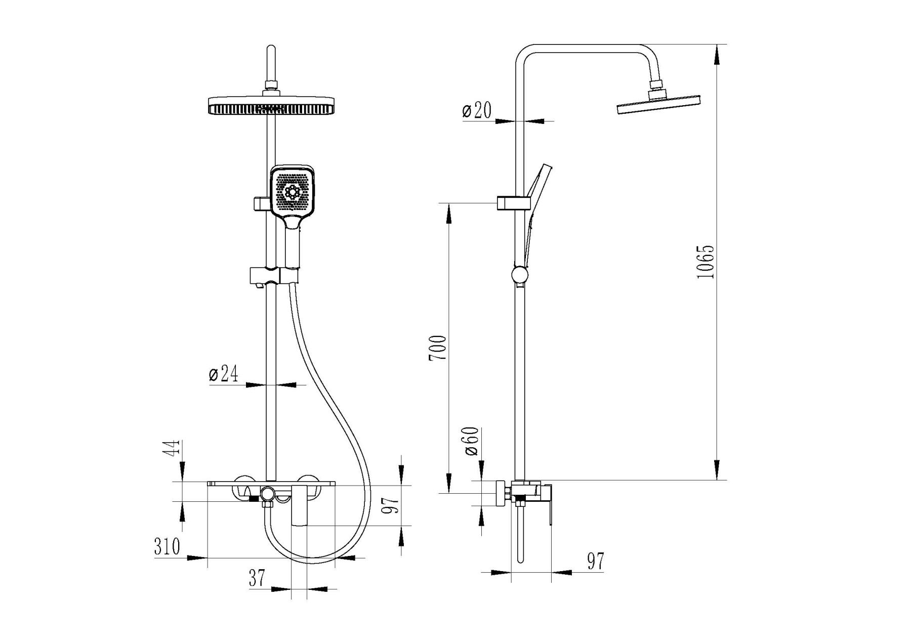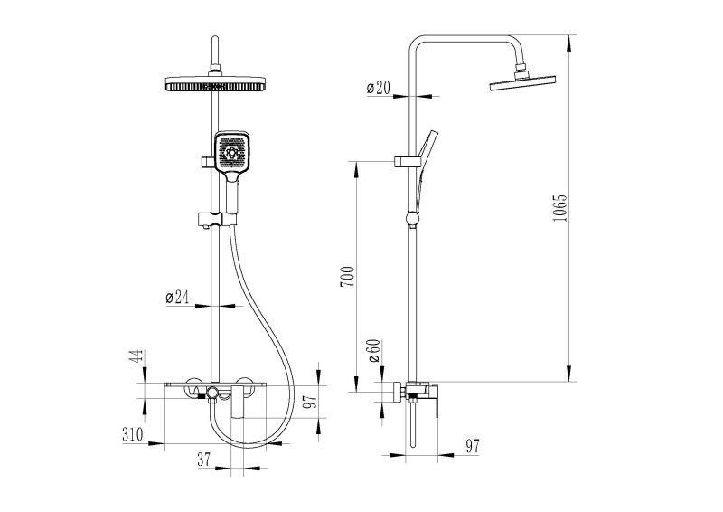 Тип:душевая система со смесителем
