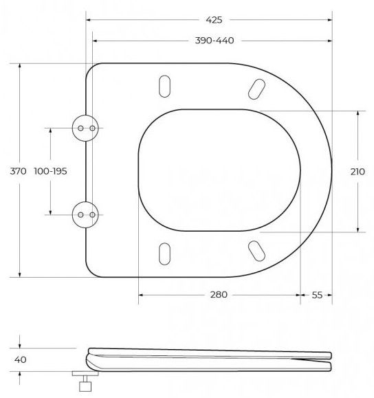 • Жесткая быстросъёмная крышка-сиденье из дюропласта с механизмом Soft Close