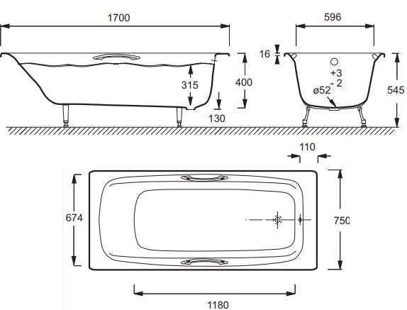 Чугунная ванна Jacob Delafon DIAPASON E2926-00 с отверстиями для ручек 170x75 купить