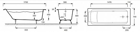 Чугунная ванна 170x70 Jacob Delafon PARALLEL E2947-S-00 купить
