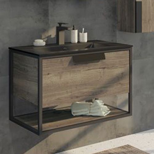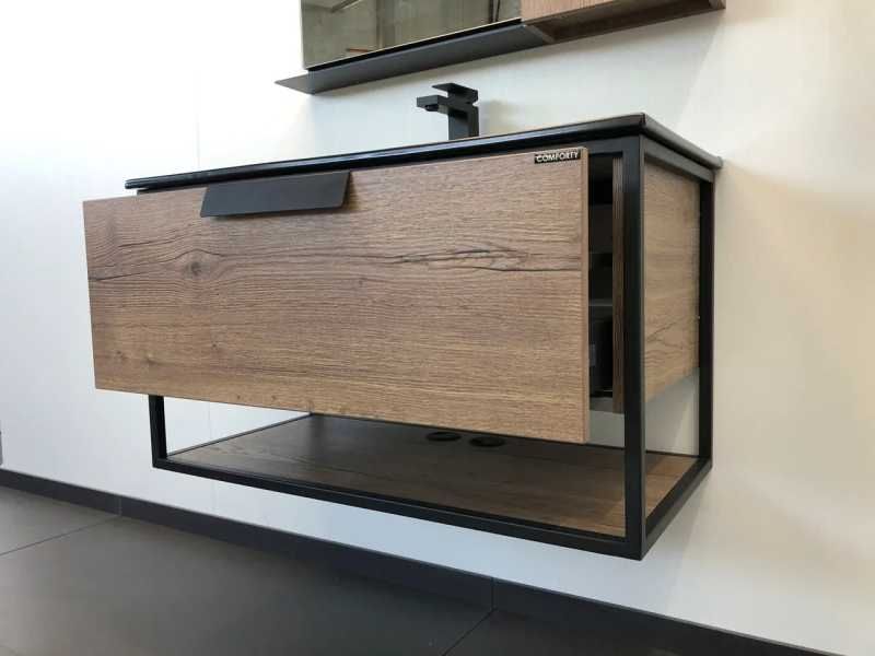 Тумба с раковиной Comfortу Бонн-90, подвесная, дуб темный, раковина Comforty 90E черная, 00-00001937Тумба с раковиной