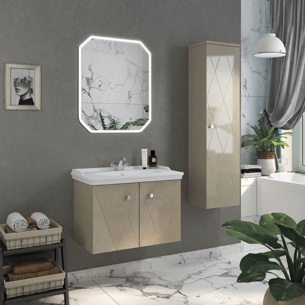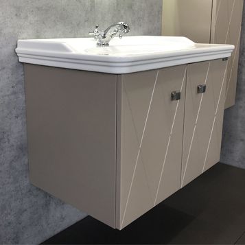 Тумба под умывальник напольная с тремя распашными дверками. Петли со встроенным доводчиком, ножки хром - 2шт, ножки пластик - 2шт.