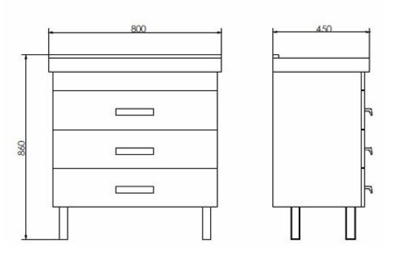 Габариты тумбы (ШхВхГ): 800х860х450 мм.