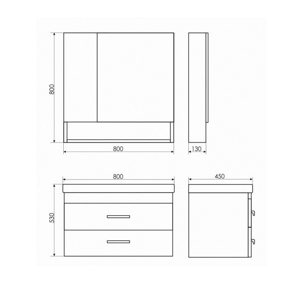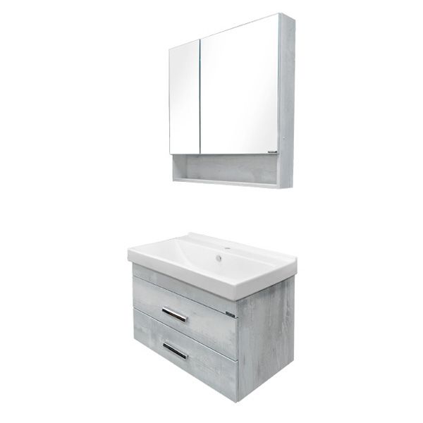 Название: Тумба-умывальник Артикул: Никосия 80 Варианты цвета корпуса и фасадов: Дуб белый Материал корпуса и фасадов: влагостойкое ЛДСП Габариты (ШхВхГ): 800*530*455 мм Комплектация: раковина Fest 80 (санитарный фарфор) Подвесная тумба с двумя выдвижными ящиками оснащенными системой плавного закрывания. Оригинальные эргономичные металлические ручки.