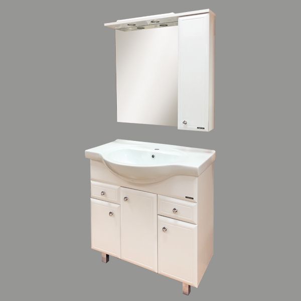 Название: Тумба-умывальник Артикул: Сочи 85 Варианты цвета корпуса: Белый глянец Материал корпуса: влагостойкое ЛДСП Цвет фасада: Белый глянец Материал фасада: МДФ Габариты (ШхВхГ): 860*880*520 мм Комплектация: раковина Сантек Сенеж