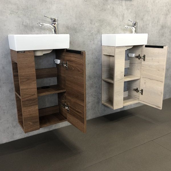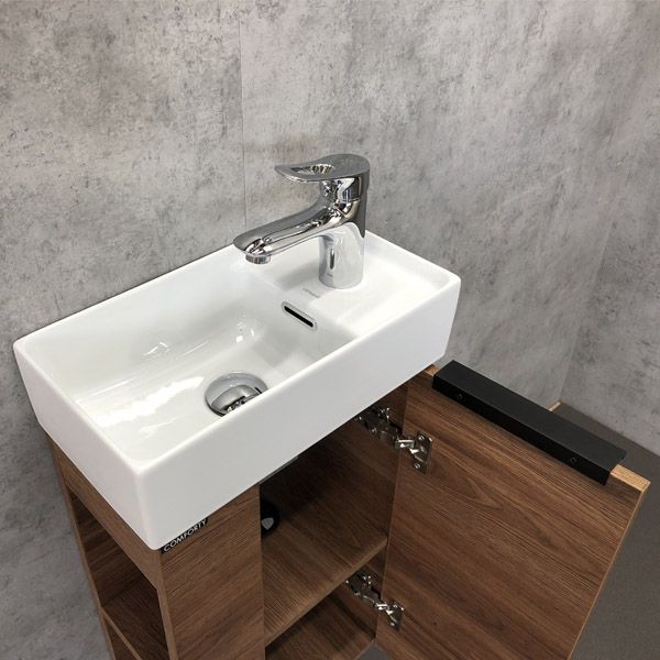 Тумба-умывальник Comforty Сорренто-90Н светло-серый с черной столешницей c раковиной Comforty 9110