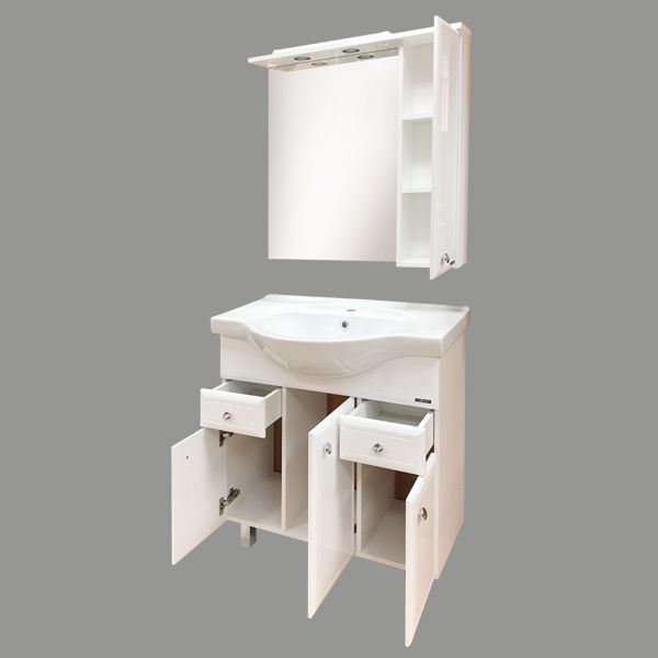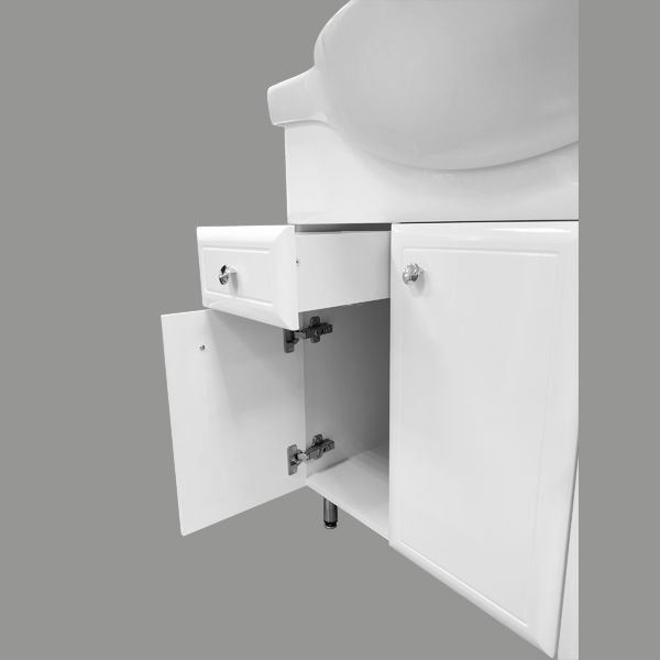 Название: Тумба-умывальник Артикул: Тбилиси 90 Варианты цвета: Белый глянец Материал корпуса: влагостойкое ЛДСП Материал фасада: МДФ Габариты (ШхВхГ): 910*850*468 мм Комплектация: раковина Comforty XD F90 Широкая напольная тумба-умывальник с тремя ящиками и двумя распашными створками оснащенными петлями с системой плавного закрывания.