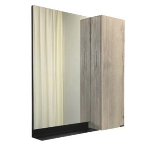 Зеркальное высококачественное полотно с амальгамой на основе серебра. Створка мебельного элемента оснащена петлями с системой плавного закрывания. За дверцей одна горизонтальная полка. Зеркало-шкаф состоит из двух отдельных элементов: зеркала и шкафчика - поэтому универсально, может быть подвешено в правом или левом варианте. Полка зеркала из металла окрашенного в черный муар или графит.