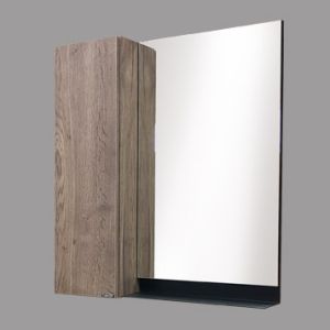 Створка оснащена петлями с механизмом плавного закрывания. Высококачественное зеркальное полотно с амальгамой на основе серебра. Фасад и корпус из влагостойкого ЛДСП Дуб темный. За створкой одна горизонтальная полка. Под зеркалом расположена металлическая полочка для размещения предметов для умывания. Зеркало и мебельный элемент два отдельных изделия, поэтому могут быть подвешены, как в правом так и в левом варианте. Название: Зеркало-шкаф