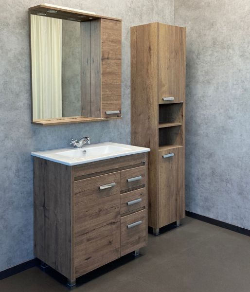 Зеркальный шкаф Comforty Марио 75 см, 00-00004159, с подсветкой, дуб темныйЗеркальный шкаф