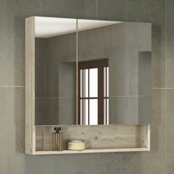 Название: Зеркало-шкаф Артикул: Парма 80 Варианты цвета корпуса: Дуб дымчатый Материал корпуса: влагостойкое ЛДСП Габариты (ШхВхГ): 800*800*165 мм Зеркальное высококачественное полотно с амальгамой на основе серебра. Створки оснащены петлями с плавным закрыванием. Высококачественное зеркальное полотно с амальгамой на основе серебра. Обе боковые створки зеркала открываются наружу. За широкой створкой две горизонтальные полки, за узкой одна. На нижней внешней полке можно расположить невысокие принадлежности для умывания.