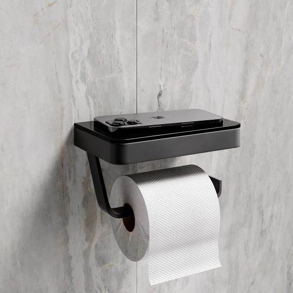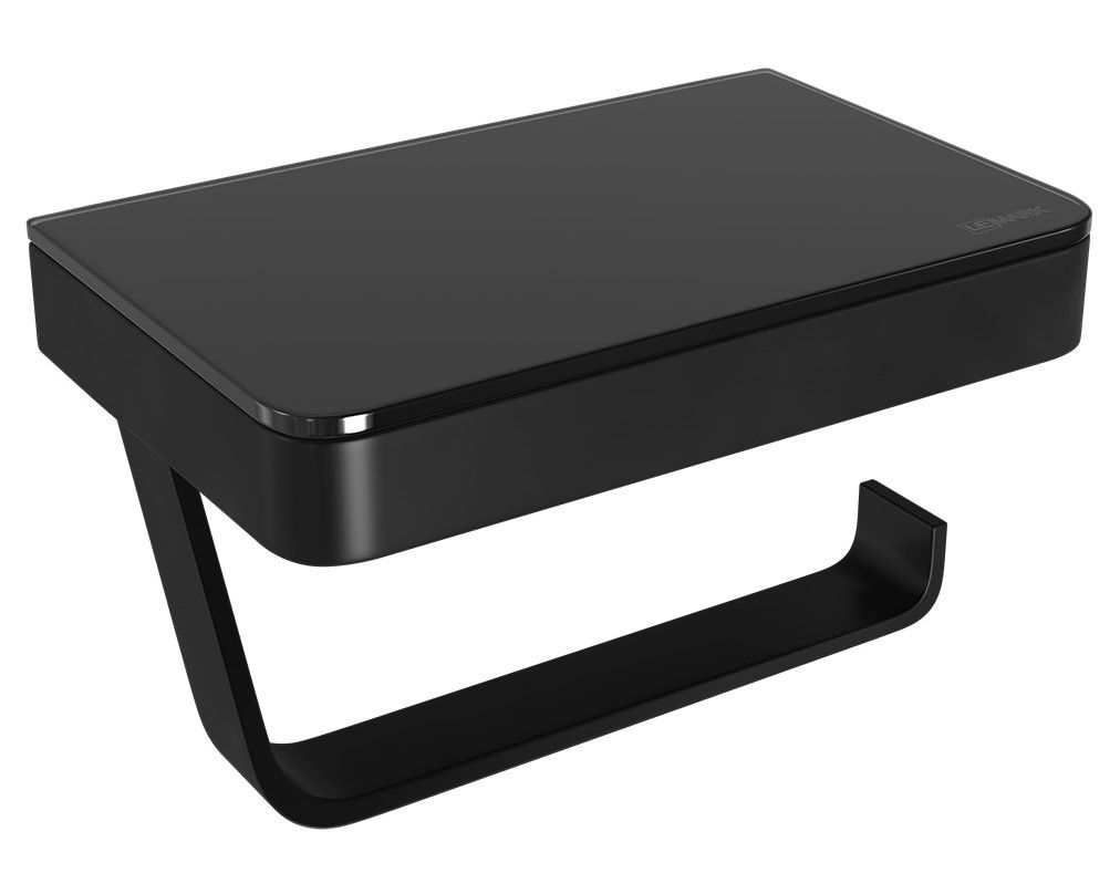 Держатель для туалетной бумаги Lemark Glass Line 9722030 с полкой чёрный матовый/чёрное стекло купить