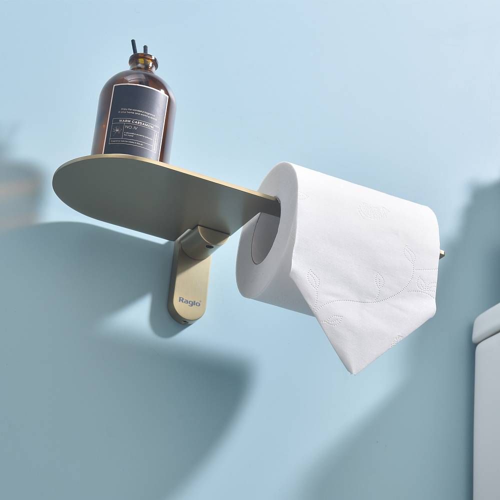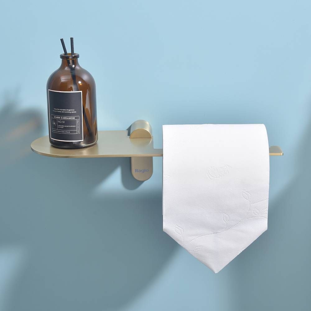 Raglo R300.03.03 Бумагодержатель с полочкой под телефон. Форма округлая, цвет - золотой сатин. Комплект крепежа есть.