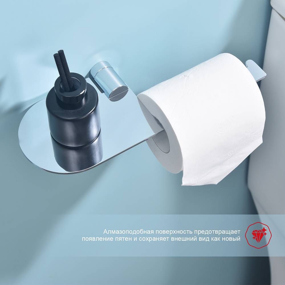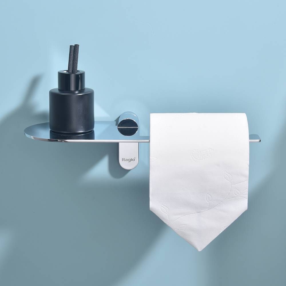 Raglo R300.03 Бумагодержатель с полочкой под телефон. Форма округлая, цвет - хром. Комплект крепежа есть.