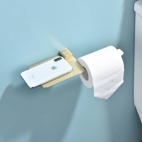 Raglo R301.03.03 Бумагодержатель с полочкой под телефон. Форма квадратная, цвет - сатиновое золото, полуматовое покрытие. Комплект крепежа есть.